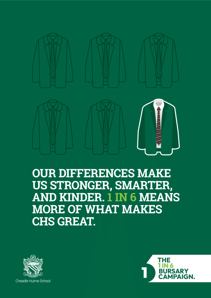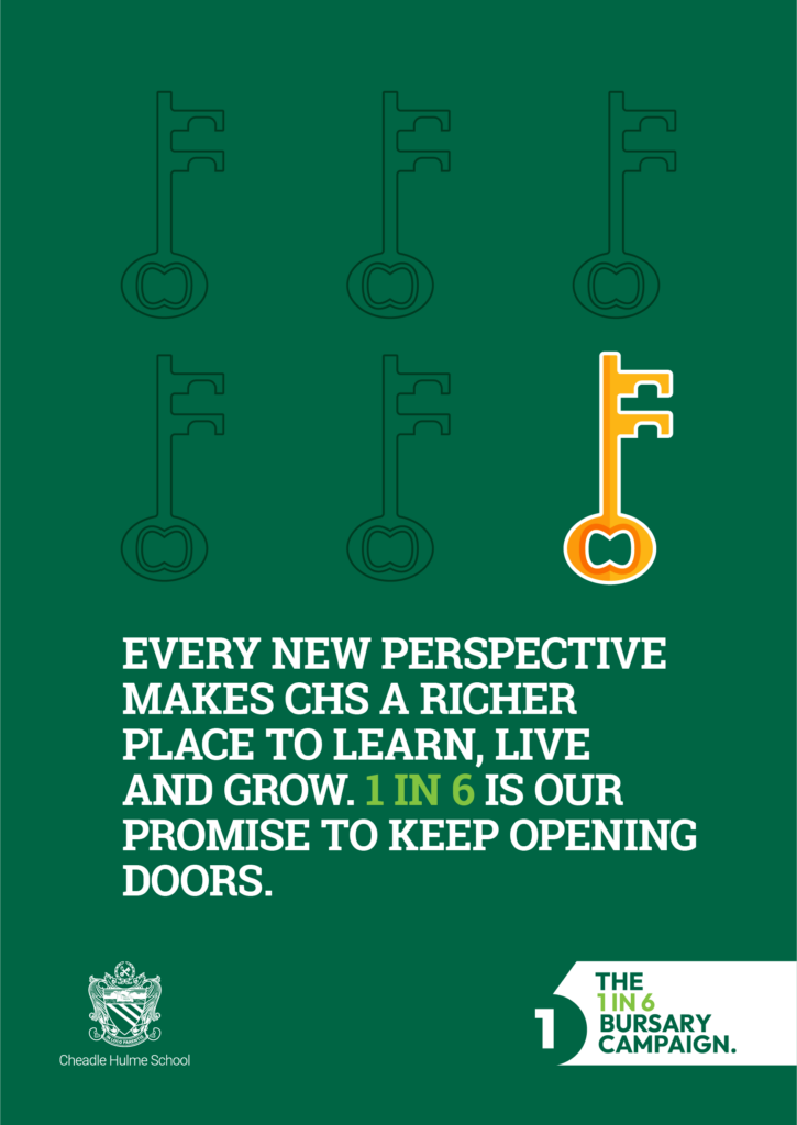 The 1 in 6 Bursary Campaign is CHS’s commitment to widening access and preserving the inclusive community that defines our school. Our goal is to increase the number of students benefiting from bursaries from 1 in 11 to 1 in 6 by 2030.